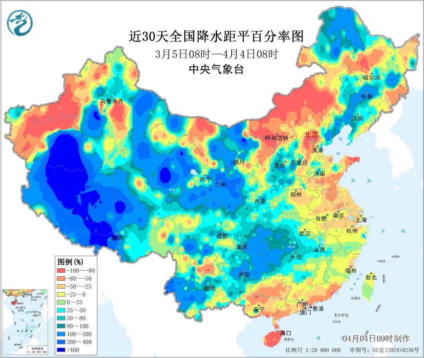 近30天降水距平百分率
